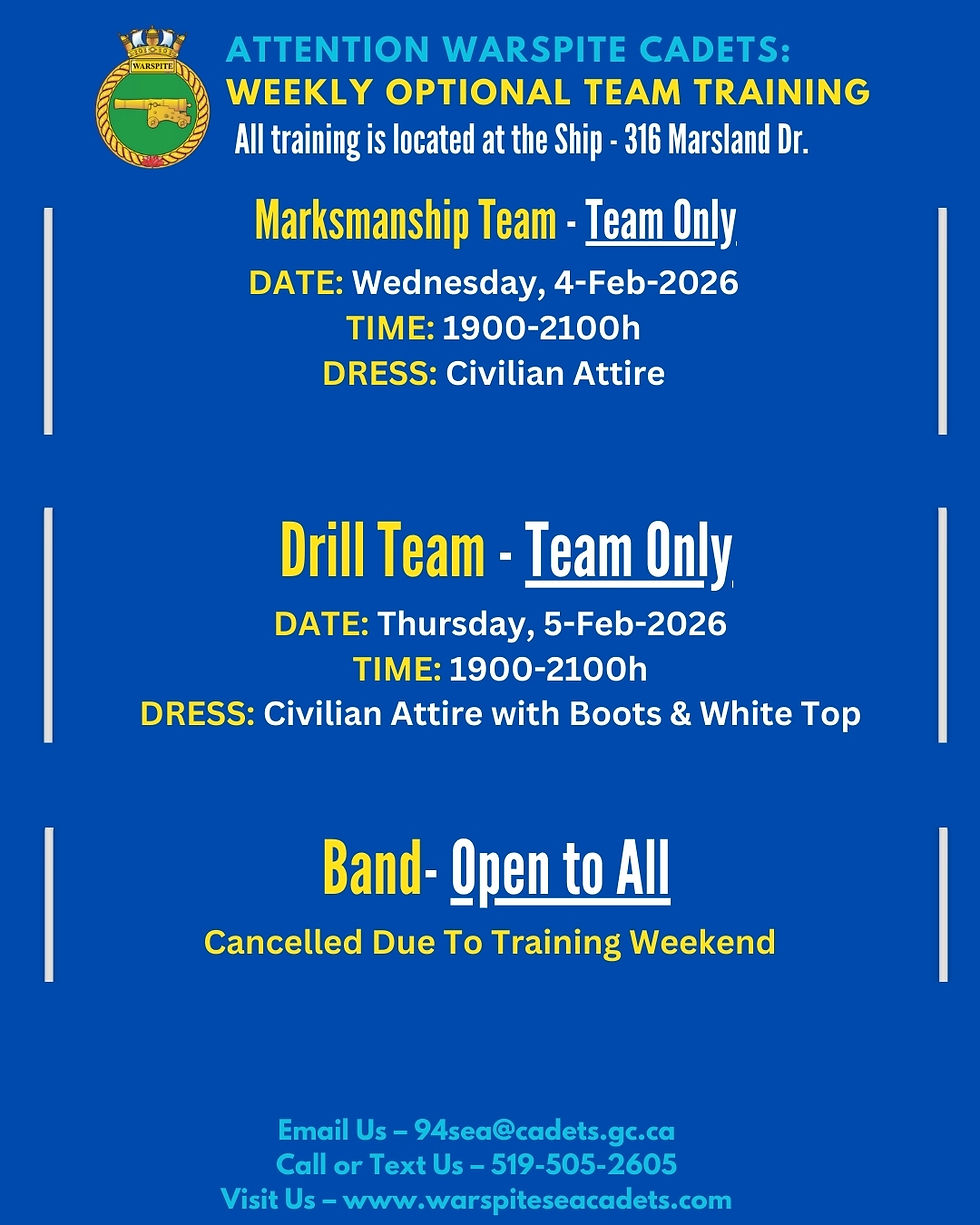 š¢ ATTENTION WARSPITE CADETS ā WEEKLY OPTIONAL TEAM TRAINING